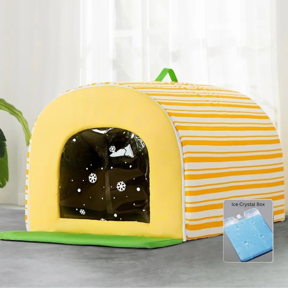 The ChillPaws Haven is a stylish, arc-shaped cooling pet house designed to keep your furry friend comfortable all summer. Its breathable fabric and ice-friendly insert help maintain a refreshing temperature inside, while the cozy enclosed space makes them feel safe and secure.