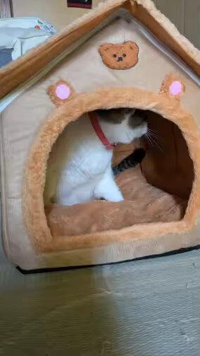 The CozyDen Foldable Pet House is an indoor pet shelter designed to provide a designated resting space for cats and small dogs. Its foldable structure allows convenient storage, and the soft interior materials create a comfortable environment for everyday use.